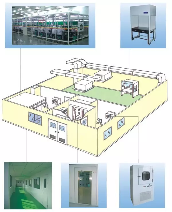 b、局部空气净化是采用净化空调器或局部净化设备(如洁净工作台、棚式垂直层流单元、层流罩等),在一般空调环境中造成局部区域具有一定洁净度的环境的净化处理方式。这种方式适用于生产批量较小或利用原有厂房进行技术改造的场合。